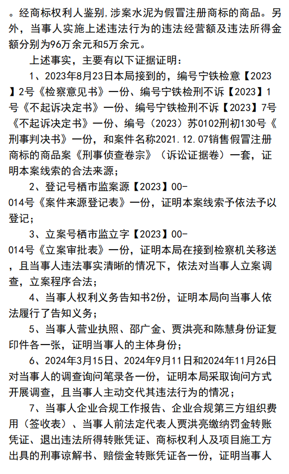 近日,江苏省南京市栖霞区市场监督管理局公布了一则行政处罚决定书(宁栖市监处罚[2025]00012号),对江苏意翔华建材贸易有限公司销售假冒“CONCH”(海螺牌)注册商标水泥的违法行为作出罚款5万元的行政处罚。该案因涉事企业主动认罚、积极整改并赔偿权利人损失,最终获得从轻处罚,引发行业对商标保护与合规经营的热议。